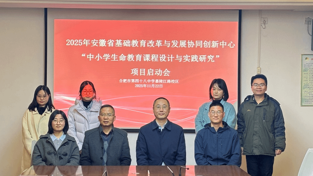 2025年11月22日,安徽省基础教育改革与发展协同创新中心“中小学生命教育课程设计与实践研究”项目启动会在合肥市第四十八中学嘉陵江路校区顺利召开;该校校长助理冯斌、生物组教师、项目组成员及合肥师范学院生物与食品工程学院学科教学(生物)研究生和生物科学(师范)本科生代表参与启动会。会议由项目主持人生物与食品工程学院王占军教授主持。