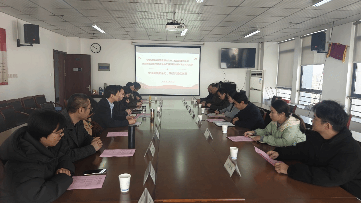 为深入推动党支部建设与业务工作深度融合,以高质量党建引领高质量发展,1月16日上午,生物与食品工程学院生物科学教工党支部与安徽省林业调查规划院生态工程监测室党支部,开展以“党建引领聚合力,院校共建促发展” 为主题的党建共建活动。安徽省林业调查规划院党委委员、纪委书记、副院长卢萍一行七人参加活动。学院副院长陈金武主持活动,生物科学教工党支部书记朱勇等参加会议。