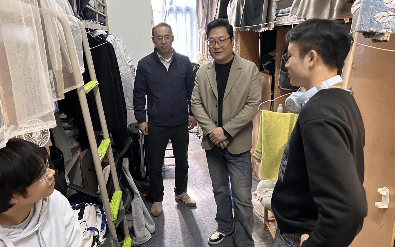 检查发现,大部分学生寝室总体情况良好,床铺及生活用品整齐美观,未发现违规电器。学院领导在检查过程中与同学们亲切交流,在耐心讲解安全用电知识、强调杜绝使用大功率电器的同时,还特别关心高年级学生的学业发展与未来规划,详细了解考研复习进展与就业落实情况,并给予积极鼓励和针对性指导。