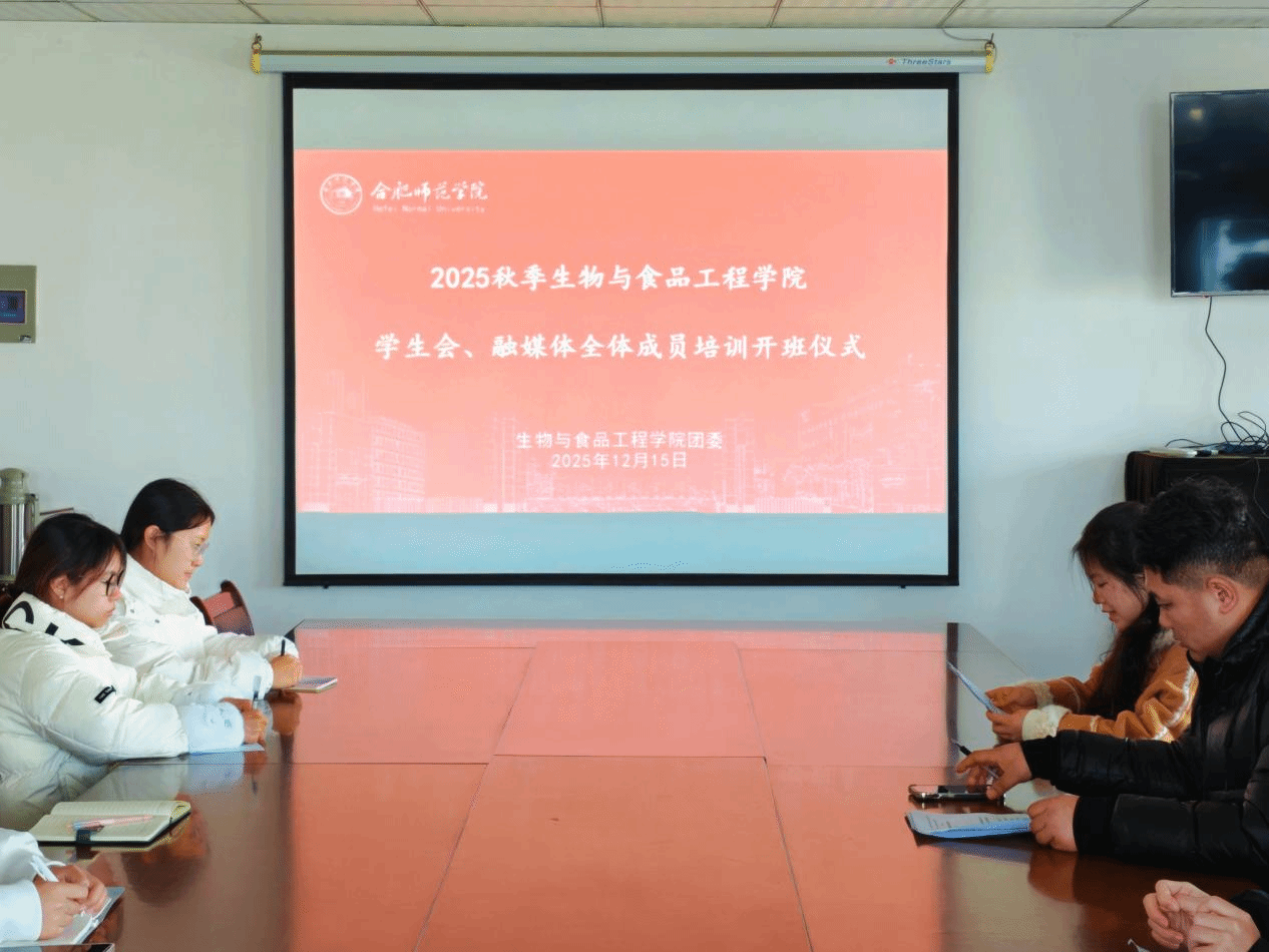 为全面提升学生骨干的政治素养与履职能力,生物与食品工程学院于12月15日在行知楼1502会议室举行2025年秋季学生干部培训班开班仪式。学院团委书记朱锦晖作动员讲话,全体学生会、融媒体中心成员共同参加了本次开班活动。